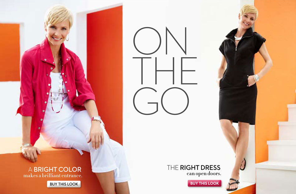This catalog was deployed on Chicos.com and supported by email, banners, and custom outfit landing pages linked by embedded CTAs for quick purchase. The featured items sold out.